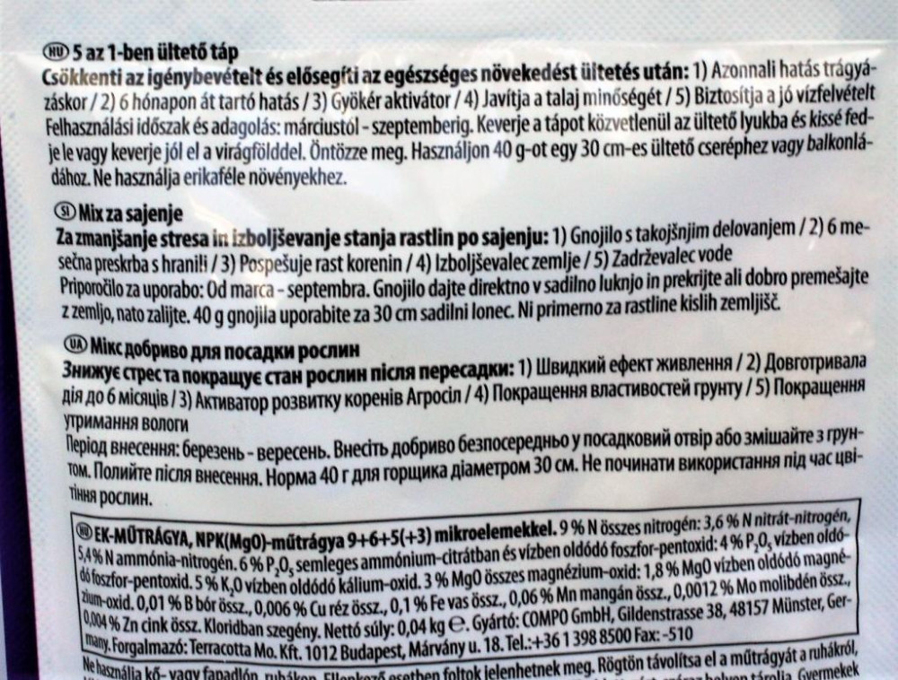 Azonnali és hosszú hatású növénytáp praktikus kiszerelésben. Gyökér aktivátor, talajjavító, javítja a vízfelvevő képességet. Gazdagítja az ültetőföldet és kondícionálja a növényt.