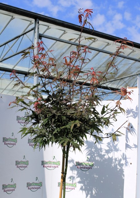 Az Acer palmatum ‘Shaina’ egy különösen dekoratív, kompakt habitusú japán juhar, amely egész szezonban változatos színekben tündököl, és szűkebb kertekben vagy akár nagyobb dézsában is látványos dísznövény.