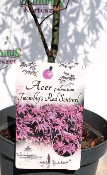 Az Acer palmatum ‘Twombly’s Red Sentinel’, magyarul ‘Twombly’s Red Sentinel’ japán juhar, egy különleges, oszlopos növekedésű fajta, amely a japán juharok között ritkaságnak számít. Habitusa keskeny, felfelé törő, így ideális kisebb kertekbe, ahol kevés a hely, de mégis látványos díszfára van szükség. Átlagos magassága 3–4 méter, szélessége viszont csak 1,5–2 méter, ami kompakt, elegáns megjelenést kölcsönöz neki.