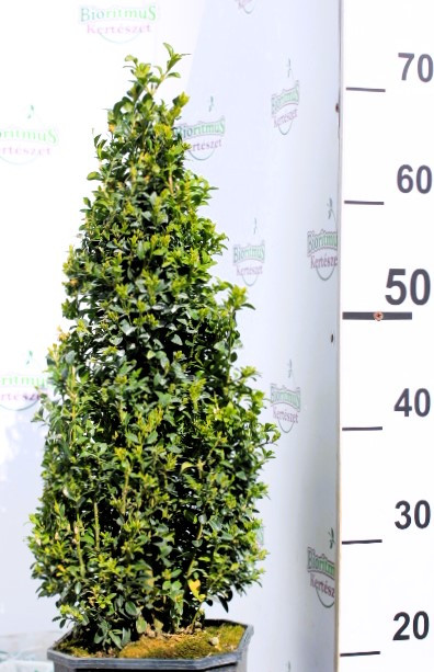 A Buxus sempervirens lassú növekedésű, és kúp alakúra metszik, így egyenletesen nyúlik felfelé.