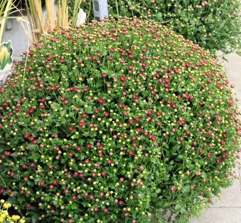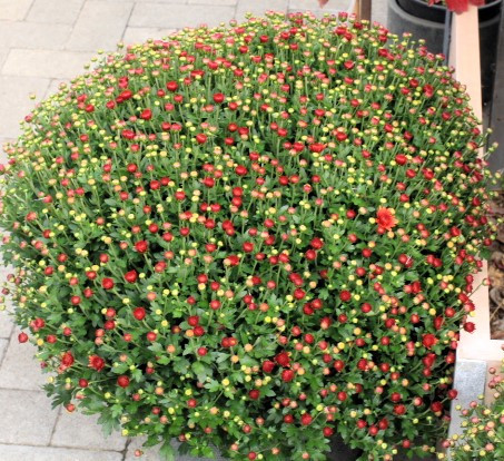 Virágai aprók, de rendkívül tömegesen nyílnak, a virágzás idején szinte teljesen eltakarják a lombot. Színváltozatai nagyon gazdagok – a fehértől, a sárgán és narancson át a rózsaszínig és bordóig terjednek, sokszor kétszínű fajtákat is nemesítenek. A virágzás szeptembertől egészen novemberig tart, így a késő őszi kert egyik legfőbb dísze.