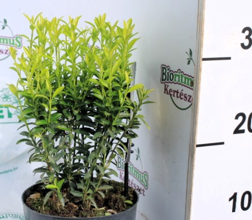 A Sárga japán kecskerágó (Euonymus japonicus Happiness) egy kompakt, felfelé törő hajtásrendszerű, sűrűn ágas, örökzöld cserje, amely ideális választás szoliterként vagy nyírott sövényként.