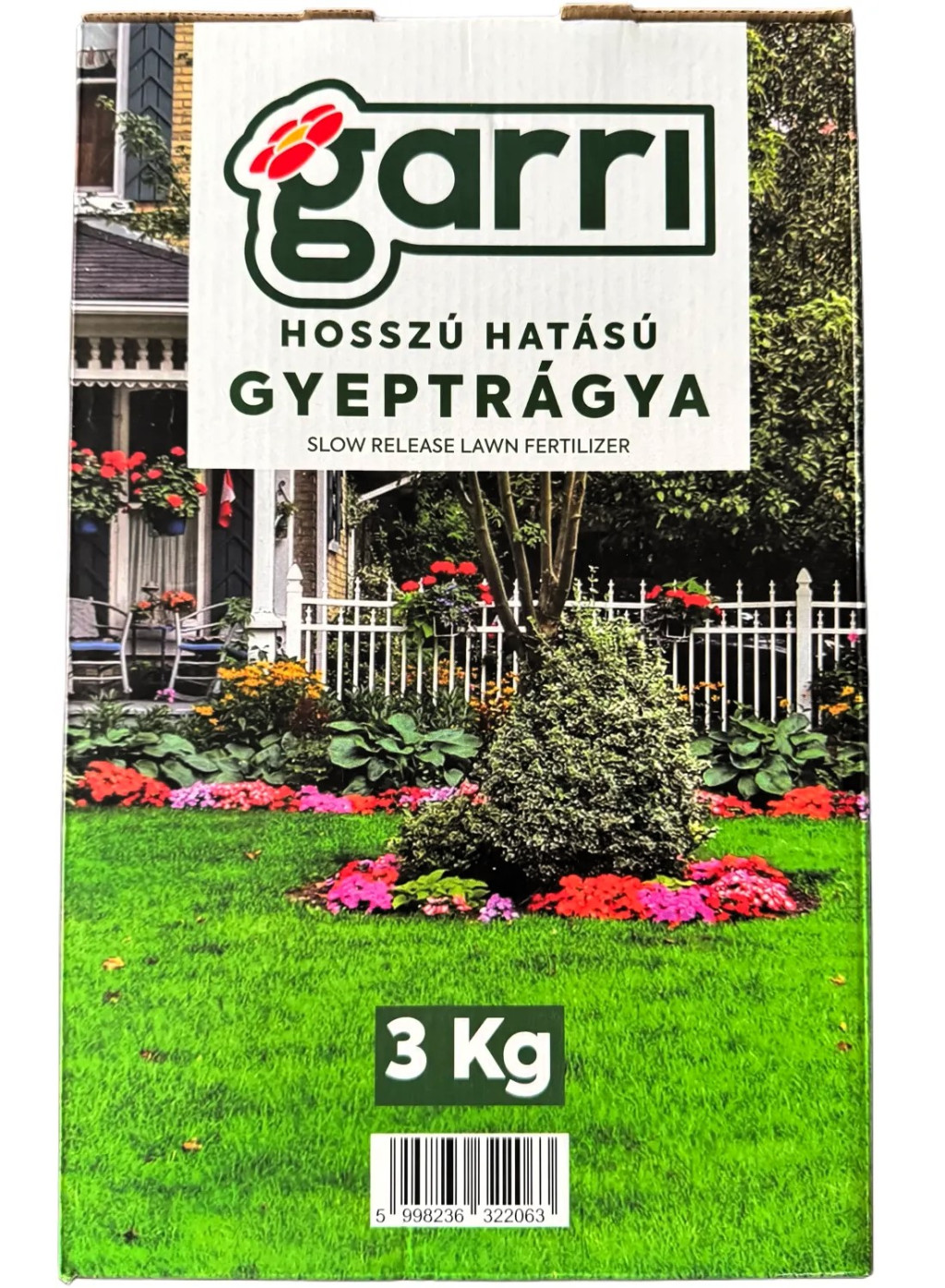 A GARRI hosszú hatású gyeptrágya díszgyepek, hagyományos gyeped és egyéb gyepfelületek tápanyag utánpótlásának céljából készült, speciális, ásványi műtrágya. A benne lévő nitrogén egy részének köszönhetően szétterítését követően azonnal kifejti hatását és garantálja a gyep gyors kizöldülését.