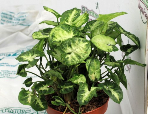A Syngonium 'Pixie' egy apró termetű, dekoratív és könnyen tartható szobanövény, amely színes lombjával és kompakt formájával ideális választás kisebb terek, íróasztalok vagy polcok élénkítésére.