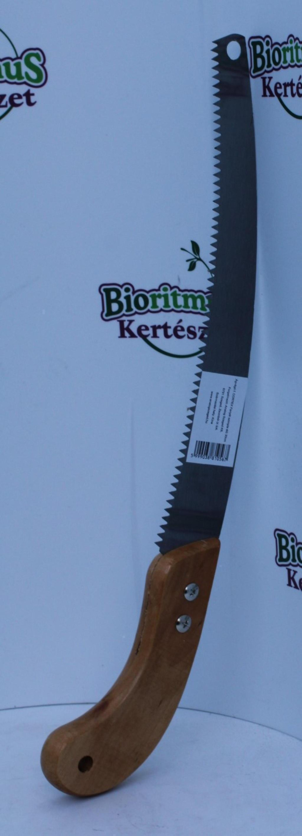 Fa nyelű, íves ágvágó fűrész, 30 cm-es pengével.